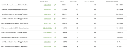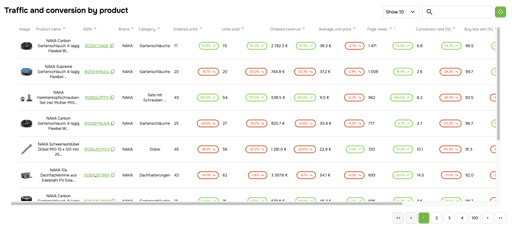 Indicators showing offer statuses, lists of products winning or losing the Buy Box, and Buy Box win trends. Enable fast reaction to visibility drops.